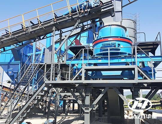 该系统主要用于生产预拌砂浆用细砂,设计产量为50t/h,原料为-30mm以下的碎石,成品砂细度模数2.4-3.0之间可调整,石粉含量控制在5%-15%,系统配置的核心主机设备为洛阳leyu.乐鱼 生产的PLS1000专用精品制砂机1台,该设备成品粒形好,粒度稳定,设备使用成本低,维修保养简单。其它配套主机还有多层细粒筛分机1台,卓效选粉机1套,环保除尘设备1套,斗式提升机3套,粉料罐1套及其它相关计量和输送设备等。