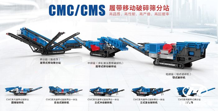 型号:CMC系列移动立式冲击破,产能95-215t/h,可生产高品质机制砂,适用于青石、鹅卵石等细碎整形作业。