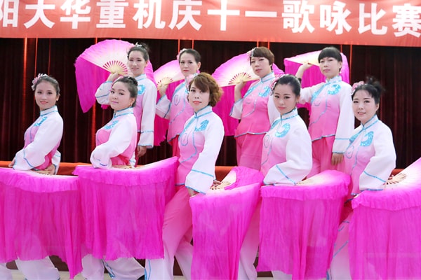 2015年“庆十一”歌咏比赛共有九个代表队参与,分别是leyu.乐鱼女子队、博林公司代表队、销售公司+电子商务部+外贸部+售后服务部代表队、自动化公司+供应外协部+品质保障部代表队、产品研发部代表队、财务部+世博租赁+华兴公司+再制造公司+百诺公司代表队、机加车间代表队、制造部+办公室+企业发展部+合同执行部+智昊公司代表队以及金构车间代表队。本次歌咏比赛得到了公司领导和各部门的大力支持,经过了一个月的筹备和排练,终于在苗董的祝福声中拉开了序幕。