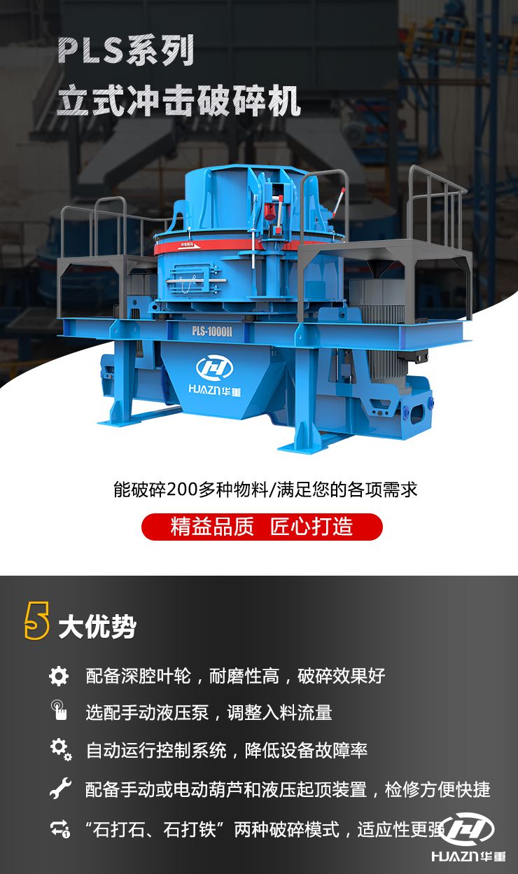 PLS系列立式冲击破碎机可采用80米/秒以上的高转速模式,用于砂石骨料加工行业粗砂粒的再次细碎整形,从而起到优化调整成品砂粒度级配的作用,使砂子的细度模数可以更小。