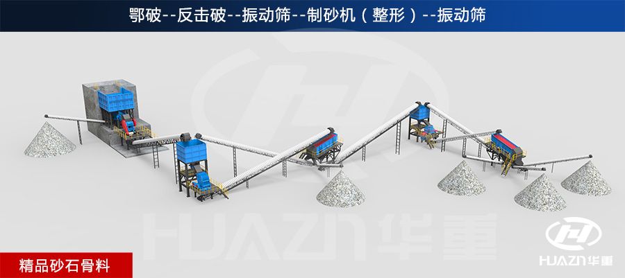 常用设备:颚式破碎机、反击式破碎机、圆锥破碎机