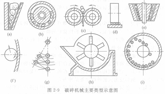(2)根据破碎方式、机械的构造特征(动作原理)来划分,将破碎机械大体分为六类,如图2—9所示。