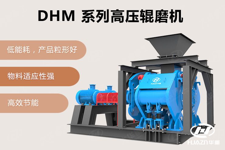 DHM 系列高压辊磨机是我公司最新研发设计的一款具有卓越适应性的高效细碎和超细碎破磨设备,是采用预先设定的破碎压力,利用液压油缸配合蓄能器推压两个相向运转的破碎辊且保证整个破碎过程中的压力稳定,从而在两辊之间对物料形成高压破碎。该设备可广泛应用于建筑、矿山、冶金等诸多领域多种物料的细碎破磨作业,可生产多种规格的细颗粒产品。该设备也可用于多种冶金渣的细粒破磨加工,简化了冶金渣的处理工艺,使尾渣更细,便于后续研磨加工。