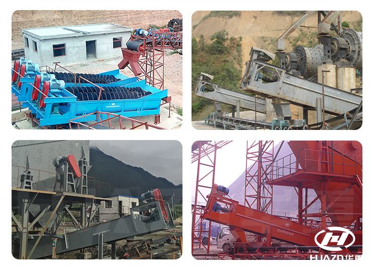螺旋洗砂设备则是利用螺旋叶片的推进作用清洗泥土,相比轮式洗砂机,螺旋洗砂机洗净度更高,并且对石料的清洗效果更好。同样的道理,利用沙、泥、水的不同比重,将砂子提取出来,水和泥顺着溜槽流走。