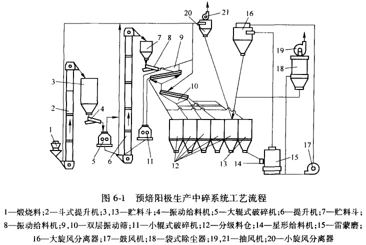 阳极炭块破碎筛分系统工艺流程如图6—1所示。