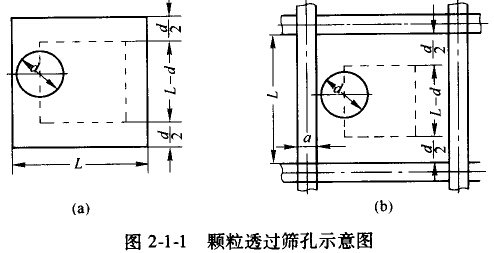 若考虑筛丝的尺寸(图2-1-1b),与上面所讨论的原理一样,得到颗粒透过筛面的概率公式: