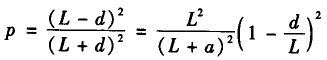 可以设想有利于颗征透过筛孔的次数,与面积(L—d)²成正比,而颗粒投到筛孔上的次数,与筛孔的面积L²成正比。因此,颗粒透过筛孔的概率,就决定于这两个面积的比值。