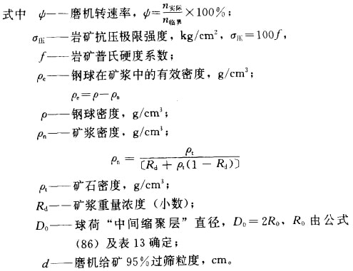 分析目前确定球径的常用公式,拉苏莫夫及其他经验公式适用范围偏小,且计算出的球径误差大,无法精确确定球径即精确确定破碎力。美国A-C公司及克斯洛德公司的球径计算公式.是欧美常用的球径计算公式,考虑的因素有矿石机械强度、给矿粒度、矿石密度、磨机直径及磨机转速等五个方面。但由于公式中采用功指数代表岩矿的机械强度,对大多数矿石来说,岩矿的机械强度的确与功指数成正比,对有些矿石则不然。对我国厂矿来说,多数厂矿只有矿石的普氏硬度系数f而无功指数资料,并且我国习惯以95%过筛粒度计算最大粒度,而欧美各国则以80%过筛粒度计,技术习惯不同。若不考虑这些因素,盲目运用这两个公式来确定球径必然有很大误差。