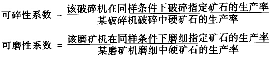 愈硬的矿石愈难破碎及磨碎,为了能将矿石力学强度对破碎及磨碎的影响进行量化确定,在工程计算上,提出用可碎性系数及可磨性系数来表征这种影响。