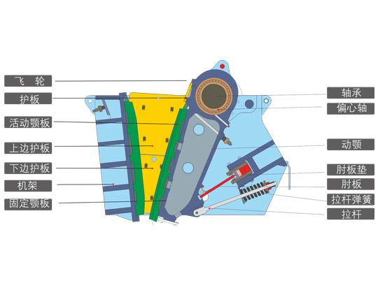 颚式破碎机的破碎腔由动颚和静颚两块颚板组成,物料在动颚和静颚的挤压作用下完成物料破碎,颚板直接与原料接触,所以颚板是颚式破碎机的主要耐磨部件,需要定期更换。