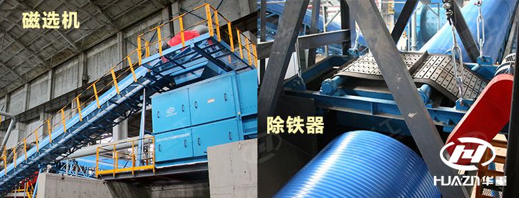 2.将大于筛网粒度的物料送入破碎机中,经过多层次破碎后再通过磁选机除铁,将分离出来的钢筋等磁性金属通过带机送入设备外;
