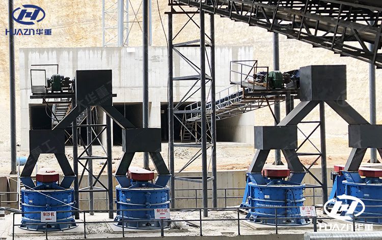 由于铁矿石石料硬所以选用圆锥破进行二级破碎,圆锥式破碎机采用层压破碎,处理能力强,可以提高破碎效率、降低细碎粒度,可以满足不同需求的铁矿石成品需求,还拥有自动化、智能化的特点,生产安全性高、环保性能好。