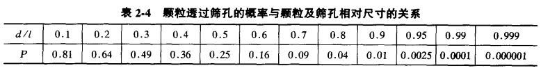 由式2-18可见,颗粒直径愈接近于筛孔尺寸,P值愈小,当d = L时,P = 0。