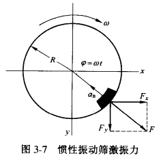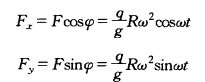 这个离心力F称为激振力,它的方向随偏心重块所在位置而改变,指向永远背离转动中心。 在任意瞬时t,F与x轴的夹角为ψ,且ψ=ωt,则F力在x和y轴方向的分力为