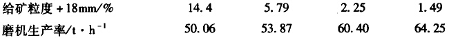 我国某些厂矿生产实践多次指出,适当地缩小碎矿最终产品粒度是提高磨矿机生产率的一种有效措施。例如我国某选矿厂的 3200mm×3100mm格子型球磨机的给矿粒度与磨机处理能力的关系为: