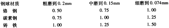 在其他条件不变时,磨矿介质的密度愈大,磨饥的功率消耗和生产率都愈高。一般都用钢或铸铁作磨矿介质,各种材质的磨矿介质的密度如下: