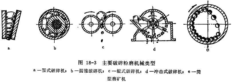 选择破碎粉磨机械的型式,应根据所采用的选矿工艺流程、矿石的物理机械性质、破碎比以及影响矿石可碎性的其它一些因素等加以综合考虑而确定。
