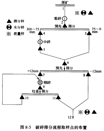 (4)分析各段碎矿产品的粒度组成,结合各段碎矿矾排矿口测定结果,分析缩小最终产品粒 度的可能性和方法。