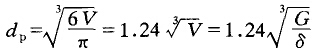 (2)等值直径表示法。村粒度细小的矿块可以用等值直径dp来表示它的大小:所谓等值直径就是与矿块等体积的球体直径。设矿块的体积为v,其质量为G,密度为δ,而球的体积为πd³/6,在等体积的条件下,其等值直径为