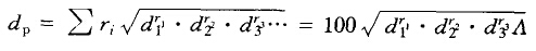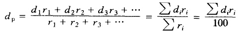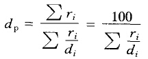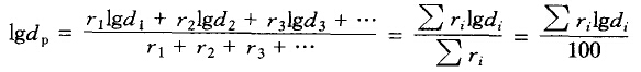 (2)宽级别混合物料的平均粒度。对于这种混合物料,可首先进行筛析,求出粒皮组成后采用统计学求平均值的方法计算其平均直径。如已知混合物料中各窄粒级的平均直径分别为d1、d2、d3、…,其产率分别为r1、r2、r3、…,则该物料的平均粒度可以下列三种方法计算