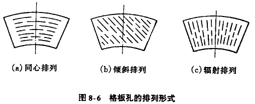 对倾斜排列的格孔(见图8-6(b)),综合了前两种形式的优点,减弱丁它们的缺点。所以,一般多选用倾斜排列形式。