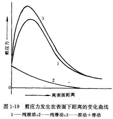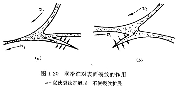 (1)裂纹起源于表面在滑动摩擦或滚动带有滑动摩擦时,待别是当表面存有缺陷时,裂纹就容易从表面开始。例如两齿轮在接触过程中,表面不仅有交变接触压应力而且还有剪叨应力。根抓赫兹的理论,最大压应力发生在表面上,而最大的剪应力发生在离表面一定距离处。图1-19为剪应力发生在表面下距离变化曲线。在表面压应力和剪应力反复作用一定周次之后,材料庆面就会产生局部的塑性变形相加工硬化,在浆些组织不均匀处,密易形成裂纹源,导致裂纹出现与扩散。当接触表面存有润滑油且滚动力。向与裂纹端部方向一致时.波动物体首先封住裂纹裂口处。(如图1-20所示),裂纹中的润滑油被培在裂缝小,在接触历应力作用下严生高压油波,迫使裂纹向30°-45°角方向扩展。当裂纹向内表面扩展到一定深度都览度时,裂纹上部如同一悬臂梁承受交变弯肋应力,最后因强度不足而折断成金用磨屑,并留下麻点状利落坑。
