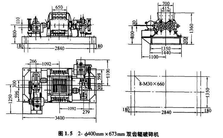 图1.5是一种用于破碎粘土的双齿辊破碎机,具有如下特点: