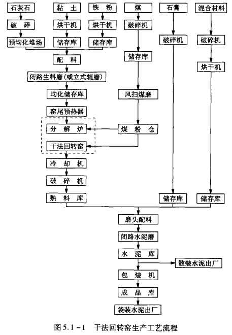 干法回转窑生产的工艺流程如图5.1-1所示。