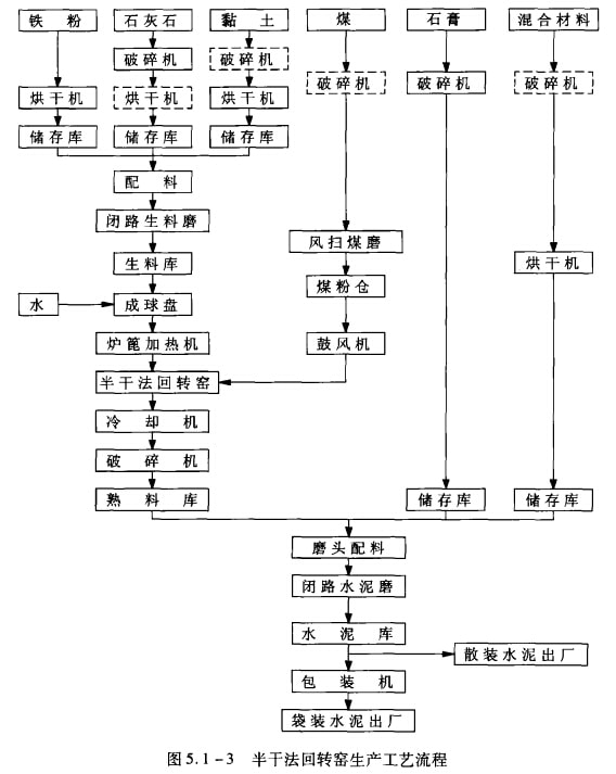 半干法回转窑生产的工艺流程如图5.1-3所示。