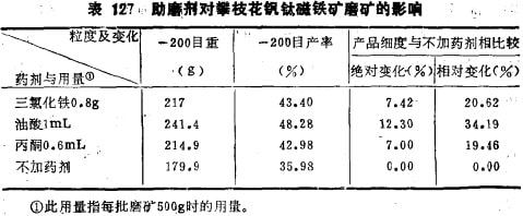 上述试验研究说明,助磨剂的加入往往软化矿石中的某些矿物相,从而可提高有用矿物解离的选择性,以及扩大矿石中矿物磨碎的选择性,所以对选择性磨矿极为有利。