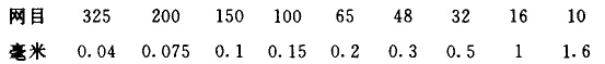 细料通过筛分得到筛上物和筛下物,分别在筛孔尺寸数字前冠以。十”号和“一”号表不;而从上下层筛网之间排出的物料,则以上下筛孔尺寸的范围表示。筛孔尺寸大小一船用毫米表示。对于粒度很细的物料,则常用网目表示(简称“目”)。网目是指1英寸(25.4mm)长的筛网上所具有的大小相同的方孔数目。根据国际标准筛制,网目和毫米的对应关系有: