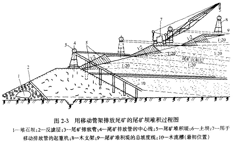 尾矿库的典型断面特征如图2-3所示。采样或取样时,应根据尾矿的堆积剖面,上下兼采,逐段推进,尽量使混合料均匀一致。