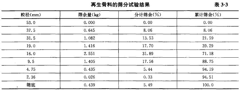 再生粗骨料的筛分试验结果如表3-3所示,从表中可以看出: