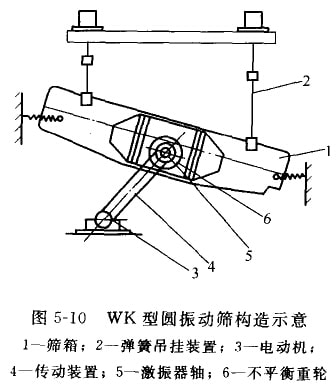 我国固体废物处理中使用的WK型、SXG-1型以及SZ型振动筛,都属于简单惯性式圆振动筛。