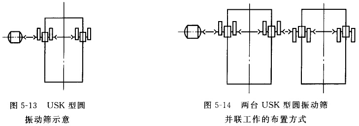 我国引进的前联邦德国USK型圆扳动筛是一种电动机直接传动的简单惯性圆运动振动筛,见图5-13。
