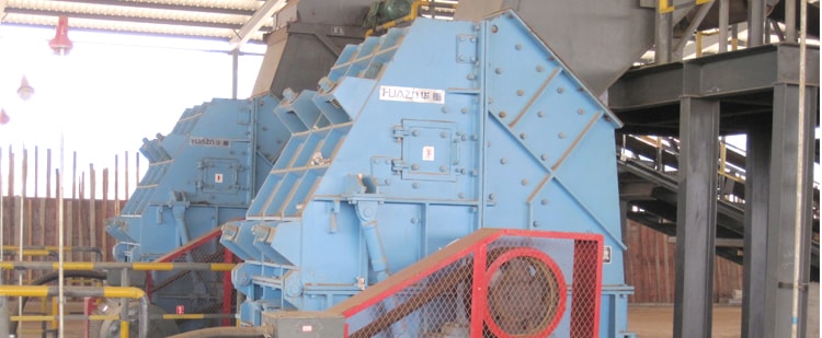 由于没有粒度控制装置(篦板),块状料与粉状料同时存在。对普通锤式破碎机而言,物料一方面受到锤头的打击,另一方面依靠锤头与篦板之间的挤压而粉碎,出料粒度容易控制,但锤头的磨损形式极不合理。
