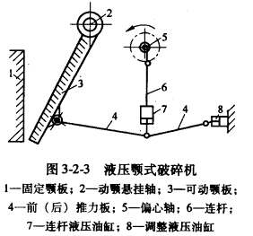 (3)液压调整。近年来还有在此位置安装液压推动缸来调整排矿口的,见图3-2-3液压颊式破碎机中的调整液压油缸8。