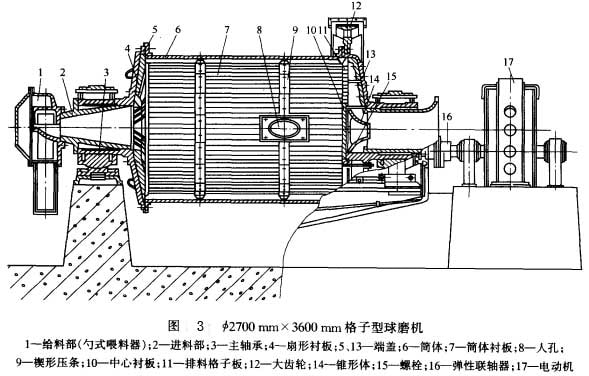 筒体部——筒体是用普通Q235A钢板卷制而成。筒体两端有大法兰和铸钢制的磨端盖连接。筒体的出料端即在出料处的端盖和筒体连接处有筛板以阻止钢球和钢段流出出料端。