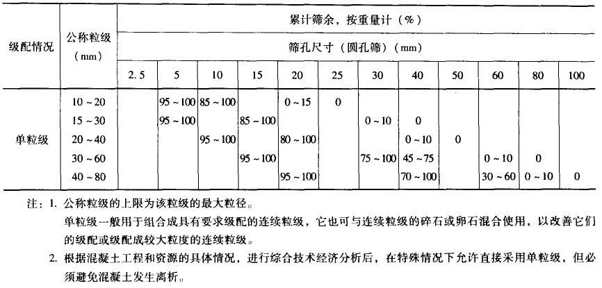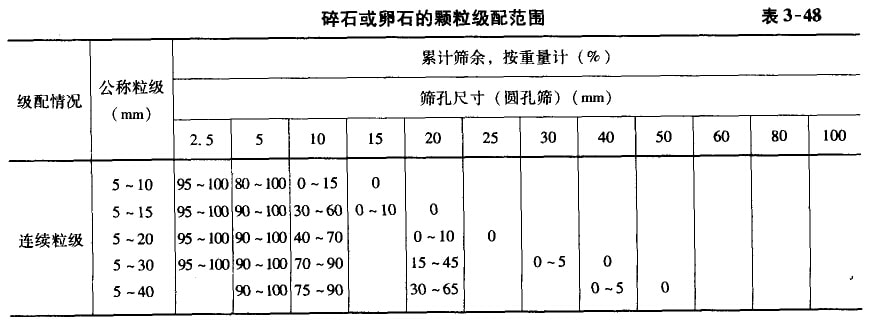 ①颗粒级配:碎石或卵石的颗粒级配.一船应符合表3-48的要求。