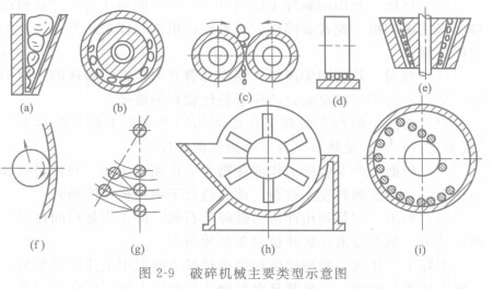 (2)根据破碎方式、机械的构造特征(动作原理)来划分,将破碎机械大体分为六类,如图2-9所示。